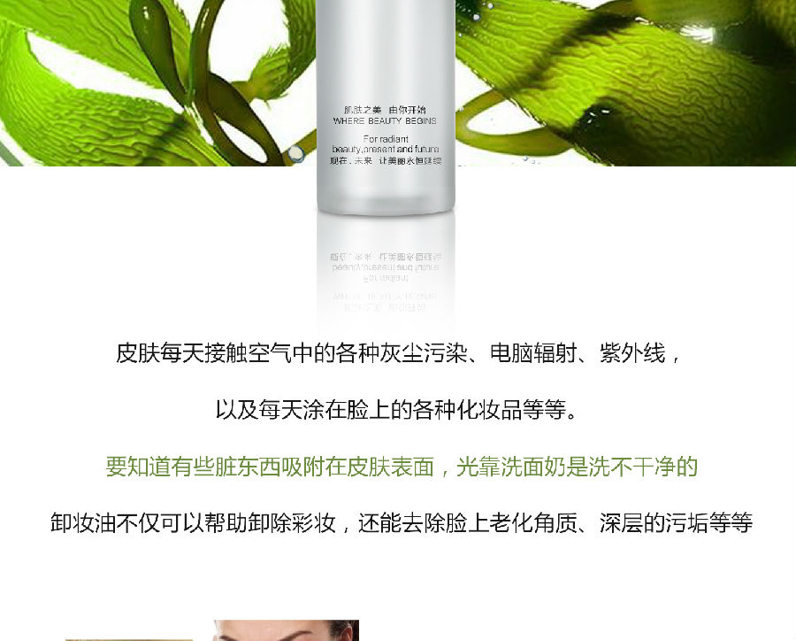 • 用法:取3〜5ml轻轻按摩整个面部,使之与彩妆充分混合相溶,再以清水洗净。